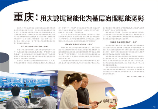 2021年,中共中央、国务院出台《关于加强基层治理体系和治理能力现代化建设的意见》,其中一项重要内容是提高基层治理智能化水平。为贯彻落实意见要求,按照重庆市委市政府部署,重庆市大数据发展局构建“1+3+3+7+N”基层智慧治理数字化体系,即建设1个基层智慧治理平台,打通党务、政务、综合治理3类数据,贯通3级政府(市—区县—街镇)、7级管理(市—区县—街镇—社区—网格—物业—楼栋),打造N个基于数字孪生的基层智慧治理应用场景,“聚数赋能”基层治理。平台支撑 织密基层智慧治理“一张网”为进一步健全基层治理体系,提升治理能力现代化水平,2021年9月,重庆抢抓智慧社区建设机遇,成功搭建一个“数据共享、功能集成、扁平一体、运行高效、执行有力”的基层智慧治理平台,具备指挥调度、所见即所通、社区日常服务等多重功能,满足各级多元管理服务需求,为基层减负,为治理增效。在渝中区,工作人员打开基层智慧治理平台页面,人、房、地、事、物、组织等数据一目了然,实现跨层级、跨部门、跨业务联动,做到“一屏观天下”“一网统管”。针对基层信息“多次采集、重复上报”难点,平台通过“渝快政”APP形成数据“一次采集、多方利用”,提升街镇社区工作效率,减少工作报表约1/3。在江北区,依托平台打造“党建引领物管”“老马带小马”“矛盾纠纷化解”等应用场景,建立区级、街道、社区、网格基层事件流转体系,以“智”提“治”,初步实现“微事网格解决、小事不出社区、大事街镇调处”,助力自治、法治、德治相结合的基层治理“同频共振”。 数据赋能 构建基层智慧治理“一张表”数据汇聚共享是基层智慧治理的关键要素之一。为此,重庆依托全市公共数据资源管理平台,搭建基层智慧治理基础数据库,通过市级数据下沉、区级数据共享和基层数据采集多种渠道,让数据“能上能下”,促进“条抓数统”。目前,重庆已汇聚中心城区数据182类、6亿条,实现市、区县、街镇、社区四级共享数据,为基层智慧治理持续注入“源头活水”。基层智慧治理平台通过联通“渝快办”移动政务服务平台,融合教育、就业等98套公共服务系统,向社区下沉社保账户查询、公积金账户查询等848项服务事项,让“数据多跑路,群众少跑腿”,方便群众“就近办”“网上办”,提升居民获得感。基层智慧治理平台屏幕上节点闪动,实时监测独居老人情况,一旦出现异常,平台可迅速调度社区网格员上门,保障独居老人安全……在重庆,越来越多细致入微的民生服务被送到居民身边,一幅全场景基层智慧治理的蓝图正徐徐展开。科技驱动 绘制基层智慧治理“一张图”作为科技领域关键技术,数字孪生能够高真实度还原物理城市信息,让城市空间信息更加清晰、立体感更强,为智慧城市提供了新手段。重庆以城市信息模型(CIM)为载体,把城市各类专业数据集成为治理“一张图”,实现实体城市向数字空间的全息投影,增强了基层治理灵敏感知、快速分析、迅速处置能力。从智慧食品安全到智能出租屋管理,从智慧电梯到智能消防,数字孪生技术无处不在。在智能消防中,渝中区已实现近3000个消防栓、54个微型消防站的点位可视化立体呈现,一旦发生火情,平台将自动将信息推送到消防队、社区、物业工作人员手机上,实现快速联动消防救援。未来,重庆将不断迭代升级基层智慧治理平台。热水器发生自燃,烟感报警装置会迅速响起;有人从阳台抛物,高空抛物监测点将完整记录……这样的社区智慧管理方式,今后将越来越多地出现在市民生活中。数据来源:重庆市大数据发展局