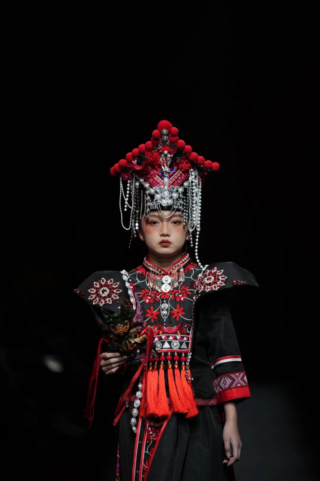 本场专场秀的69套精美服饰,由楚雄州武定县彝绣新锐设计师李蕊吟及其团队共同创作完成,这也是李蕊吟首次以专场形式登上中国国际时装周的舞台。出生于彝族家庭的李蕊吟,深耕彝绣传承与创新十余年,不仅坚持收藏老绣片、挖掘彝家传统图腾,还善于将现代审美融入传统技艺,其创办的“花彝裳”相关设计工作室,作品已远销英国、泰国、缅甸等国,让彝绣走出大山、走向世界。